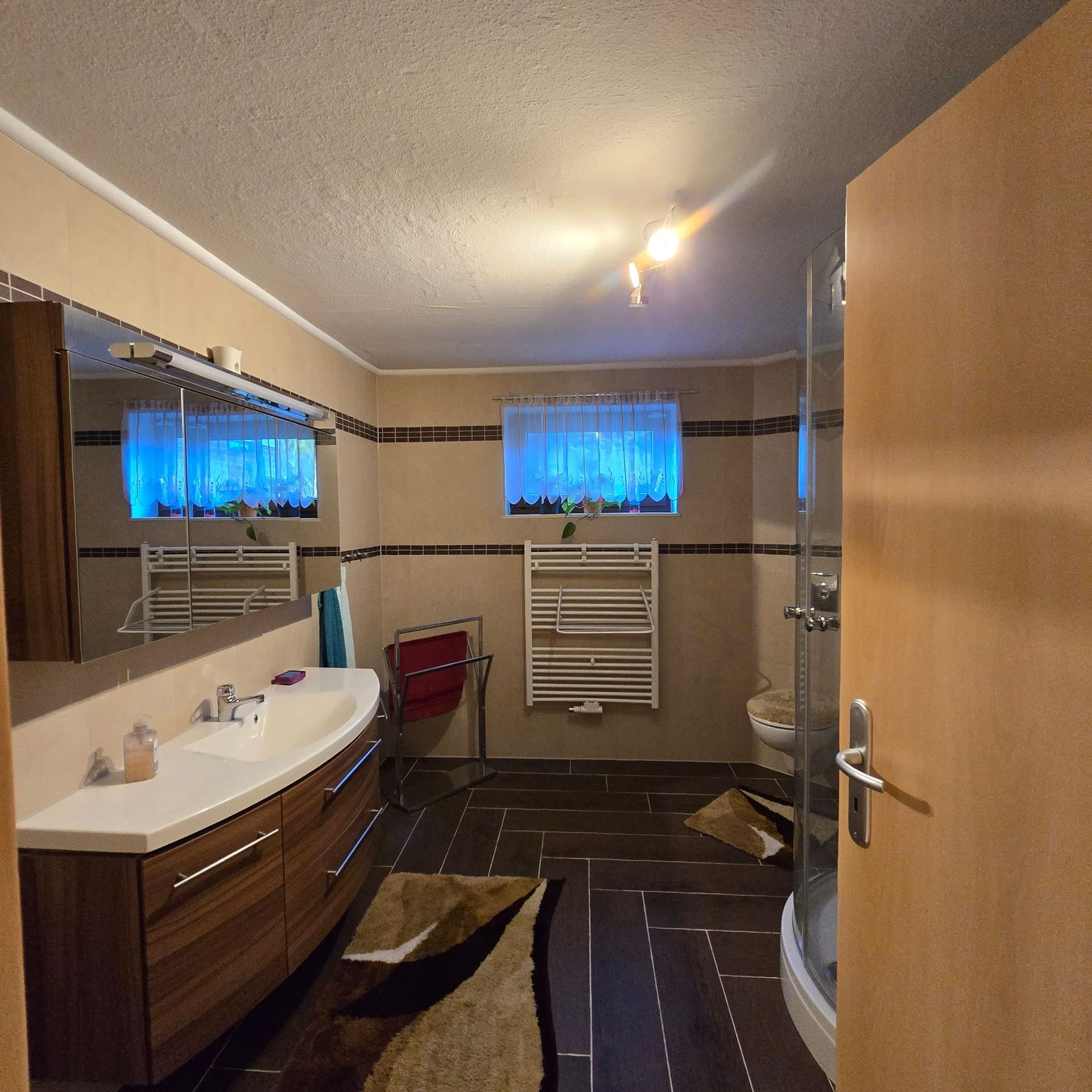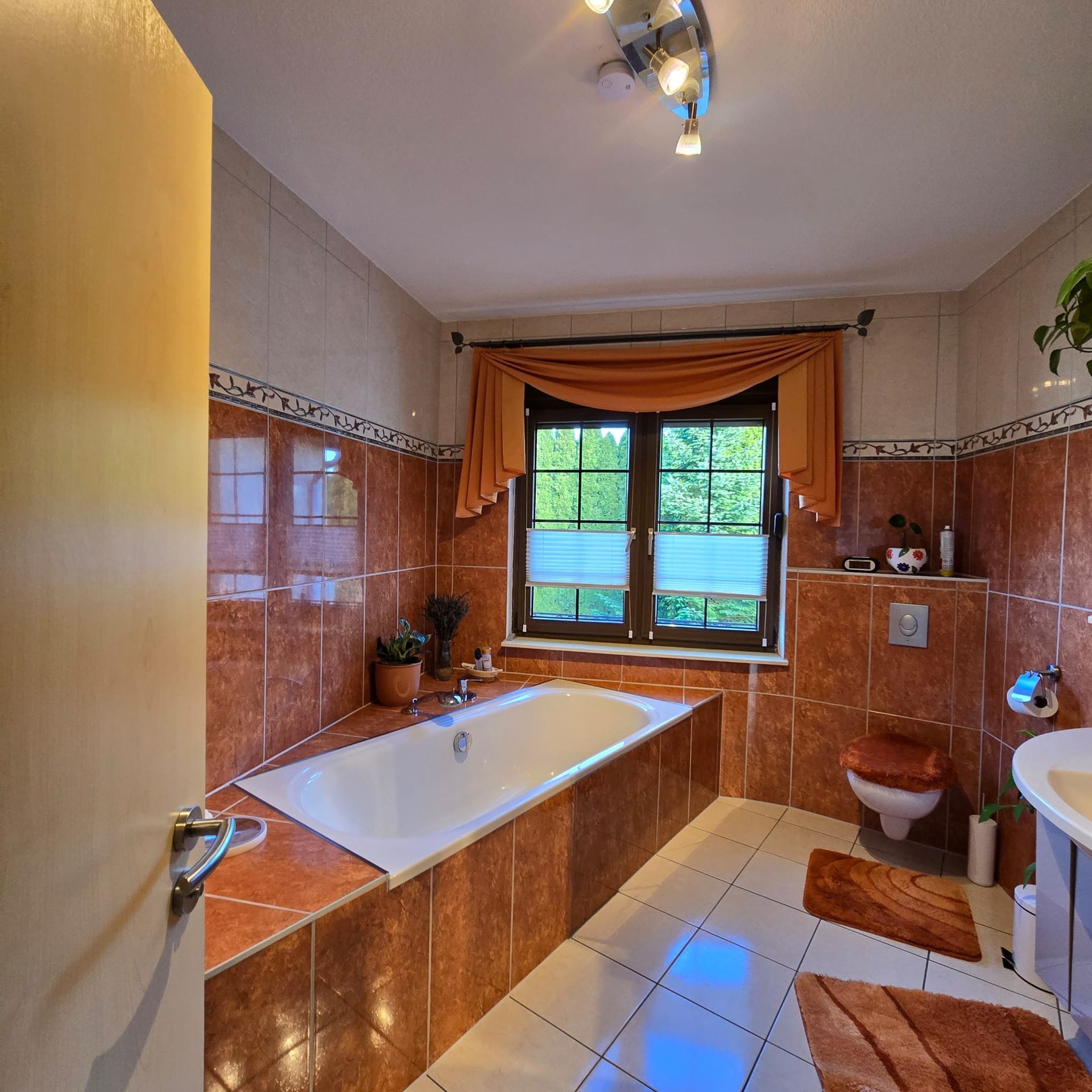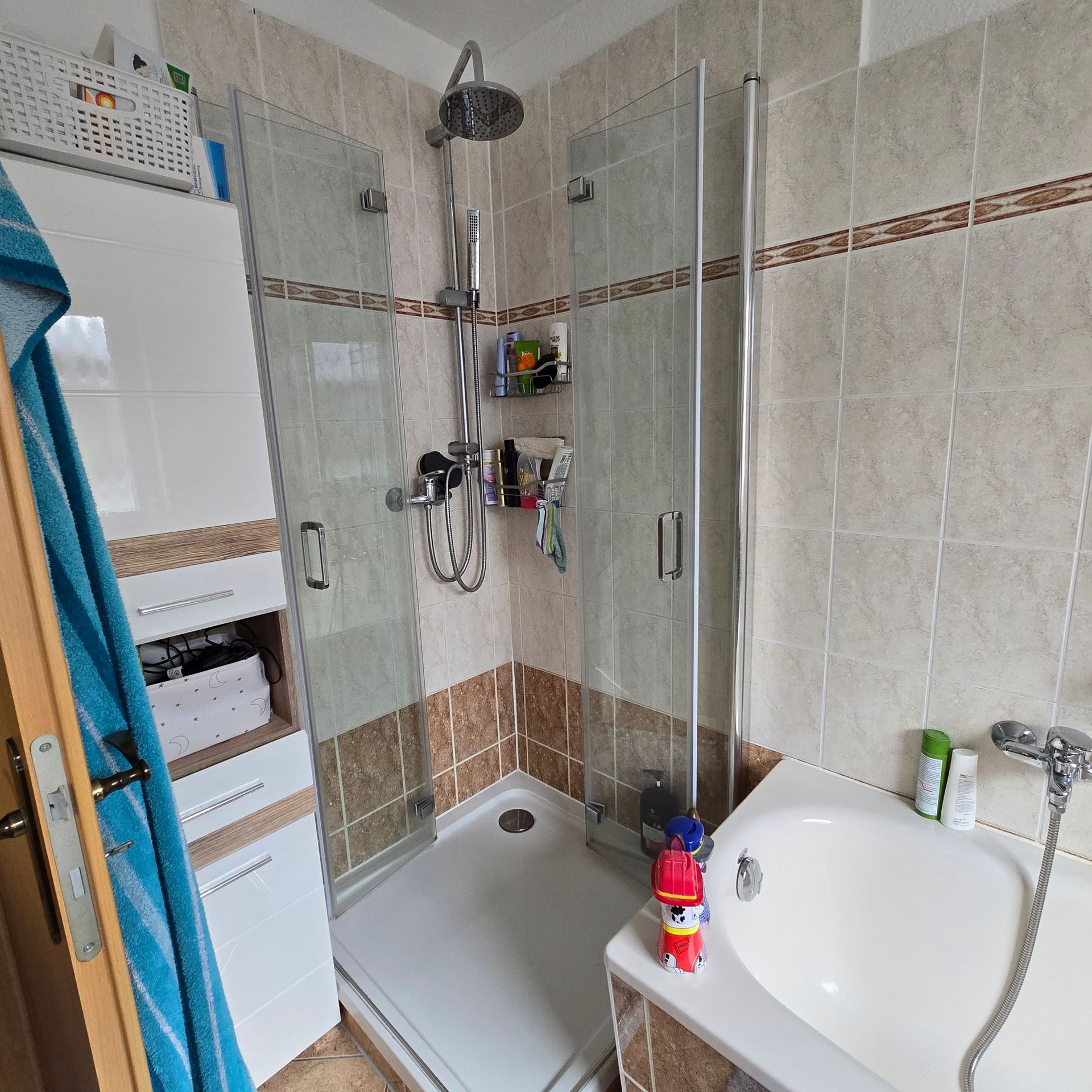 Das Badezimmer verwöhnt mit Dusche und Badewanne gleichermaßen – für schnelle Erfrischung oder entspannte Auszeiten. Ein separates Gästebad sorgt für zusätzlichen Komfort im Alltag.