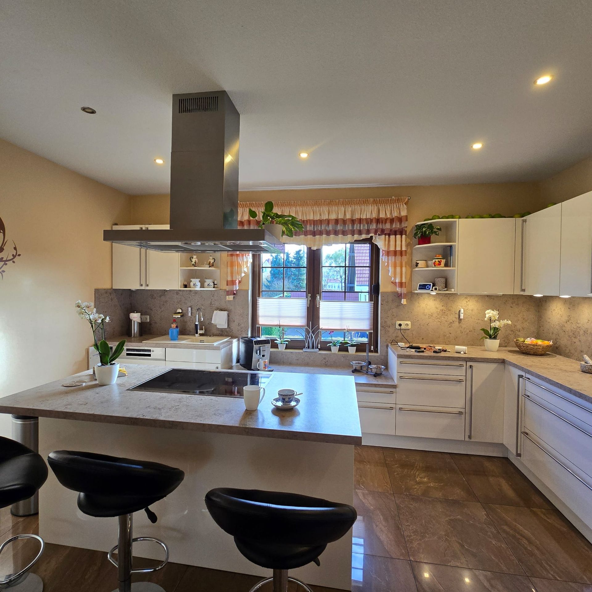 • Offene Wohnküche: Die offene Küche lädt zum gemeinsamen Kochen und geselligen Beisammensein ein. Sie bietet ausreichend Stauraum für Ihre Vorräte und ist bestens ausgestattet, um auch längere Aufenthalte komfortabel zu gestalten.