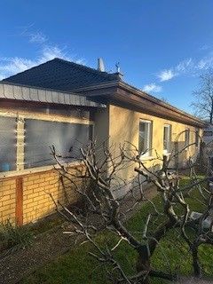Aktuell ist das Grundstück mit einem etwa 36 m² großen, sanierungsbedürftigen Bungalow bebaut. Aufgrund des baulichen Zustands wird ein Abriss empfohlen.